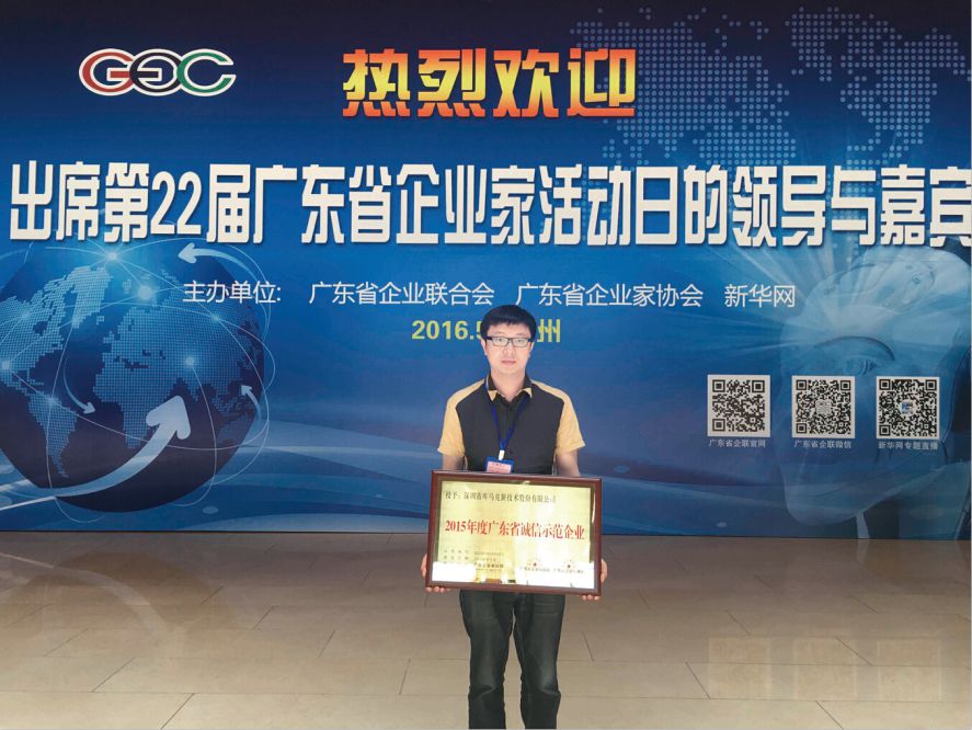 2016年5月11日,由廣東省企業(yè)聯(lián)合會、廣東省企業(yè)家協(xié)會和新華網(wǎng)共同主辦的第22屆廣東省企業(yè)家活動(dòng)日在廣州白云國際會議中心舉行。庫馬克作為電力電子傳動(dòng)與自動(dòng)化行業(yè)誠信經(jīng)營的國家高新技術(shù)企業(yè),榮獲“2015年度廣東省誠信示范企業(yè)”稱號。