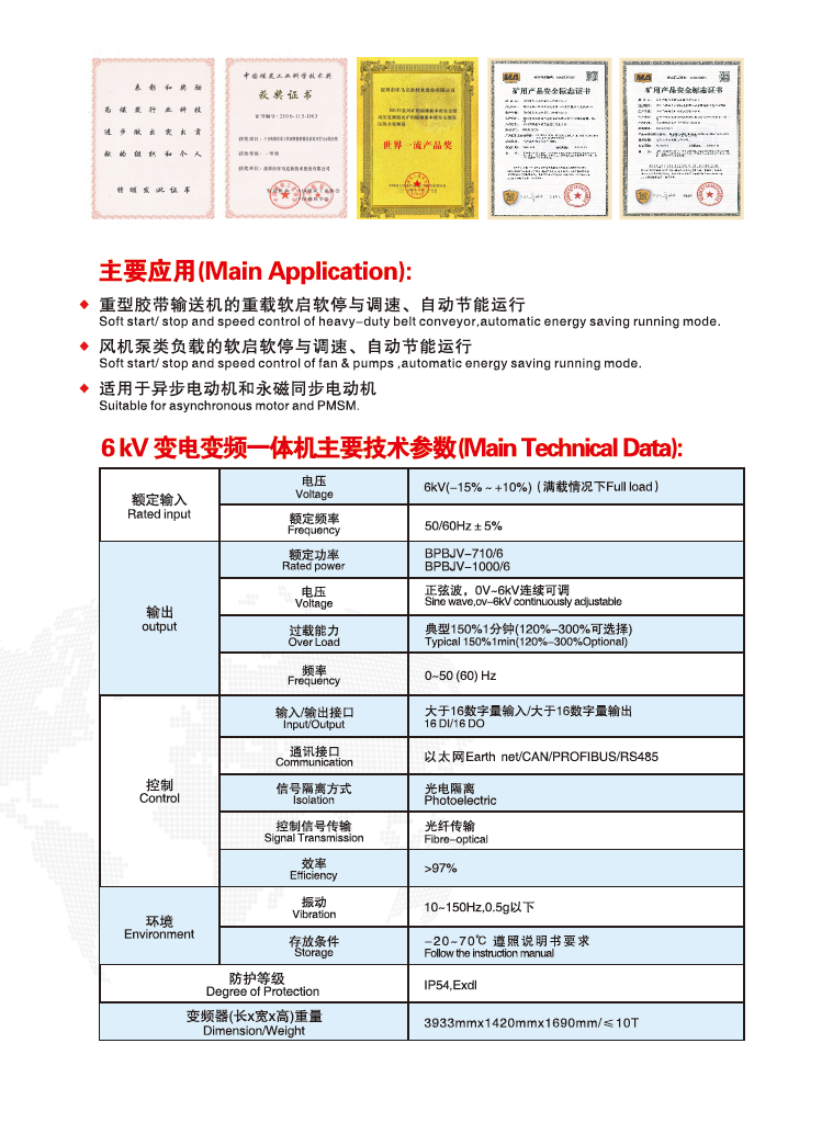 1、功率范圍:710kW ~ 1000kW ( 6kV ) ;