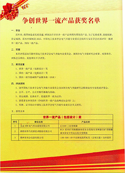 2015年11月27日由中國(guó)電工技術(shù)學(xué)會(huì)電氣節(jié)能專(zhuān)業(yè)委員會(huì)聯(lián)合中國(guó)歐洲經(jīng)濟(jì)技術(shù)合作協(xié)會(huì)共同主辦的 “爭(zhēng)創(chuàng)世界一流產(chǎn)品高峰論壇”會(huì)議在深圳召開(kāi)。北京ABB電氣傳動(dòng)系統(tǒng)有限公司ACS880系列工業(yè)變頻器和深圳市庫(kù)馬克新技術(shù)股份有限公司生產(chǎn)的BPJV系列礦用隔爆兼本質(zhì)安全型高壓變頻器及礦用隔爆兼本質(zhì)安全型高壓組合變頻器等。分別獲得世界一流產(chǎn)品(設(shè)計(jì))獎(jiǎng)。