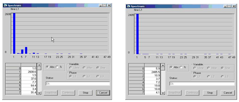 使用前諧波棒形圖 使用后諧波棒形圖