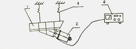 電振器結(jié)構(gòu)圖:(1)料槽 (2)電磁激振器 (3)減振器 (4)調(diào)控儀