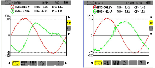 使用前后電流諧波對比如下: