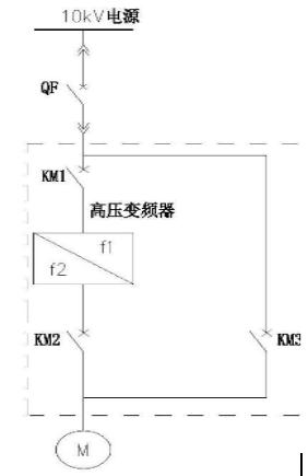 在檢修高壓變頻器時KM1、KM2斷開,對變頻器進行檢修。