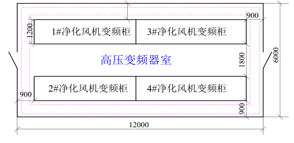 手動(dòng)旁路時(shí)變頻器室平面布置圖